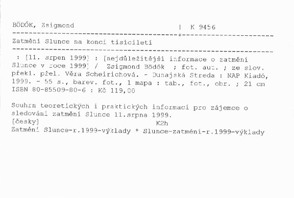 | Podnázev | [11. srpen 1999] : [nejdůležitější informace o zatmění Slunce v roce 1999] |