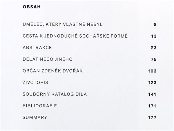 Katalog výstavy, která představila v Letohrádku Hvězda dílo méně známého českého sochaře Zdeňka Dvořáka. Text přibližuje Dvořákovy životní osudy a jeho směřování k abstraktnímu uměleckému jazyku. Bohatá obrazová dokumentace jeho děl.