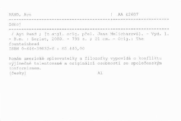 | Autor | Ayn Rand ; [z angl. orig. přel. Jana Melicharová] |