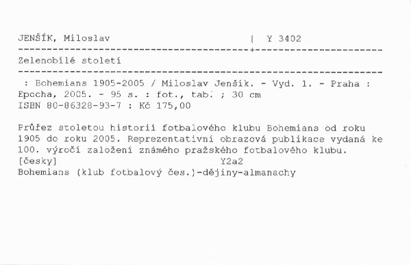 Reprezentativní obrazová publikace vydaná ke 100. výročí založení známého pražského fotbalového klubu.