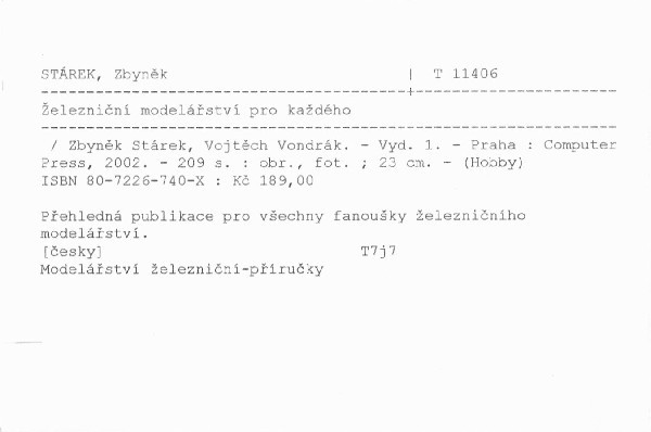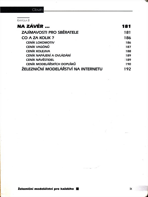 Jedná se o první publikaci na českém trhu, která se podrobně a komplexně věnuje stavbě a zapojení modelů lokomotiv, vagónů a veškerého příslušenství, používaného v oblasti železničního modelářství. Úvodní kapitola se věnuje historii tohoto koníčku od počátku 19.století, jak u nás, tak i ve světě. Následuje postupné modelování kolejiště, při jehož stavbě autor radí, jak při jednotlivých krocích postupovat a na co je třeba si dávat pozor. Všechny varianty budovaných kolejišť jsou ve velikosti H0. Stavba dále pokračuje i osvětlením a kompletní automatizací provozu, výběrem železničních vozidel či vytvořením okolní krajiny. Kniha je určena pro příznivce všech vyráběných modelových velikostí železnic včetně úzkorozchodných tratí a je doplněna mnoha nákresy, schématy a barevnými fotografiemi.
