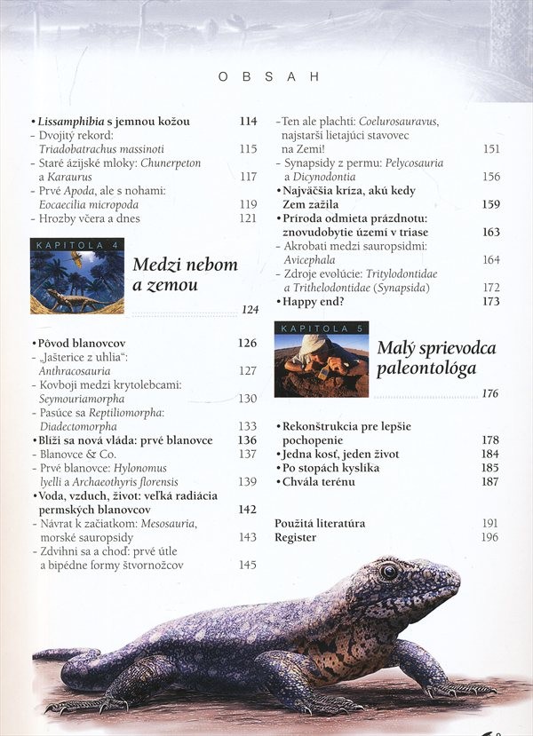 Publikace je zaměřena na živočichy, kteří jako dinosauři, ale také obojživelníci i plazi a savci, mají obratle a čtyři končetiny opatřené prsty: tetrapodní obratlovce (čtvernožce). Seznamuje s jejich začátky asi před 370 miliony let, vysvětluje evoluční mechanismy na počátku vývoje tetrapodů. Ukazuje vzorek diverzity prvních tetrapodů. Představuje formy s různou morfologií a různým způsobem života, někdy velmi podivného vzhledu. V závěru knihy seznamuje s množstvím fosilií.
