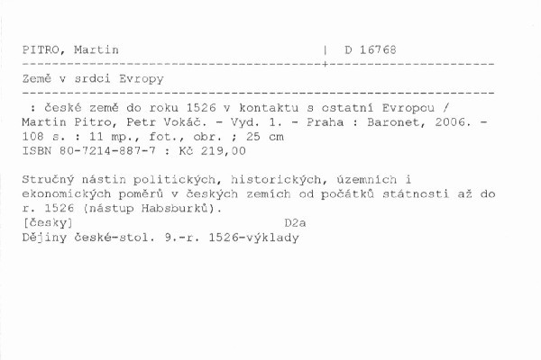 | Podnázev | české země do roku 1526 v kontaktu s ostatní Evropou |