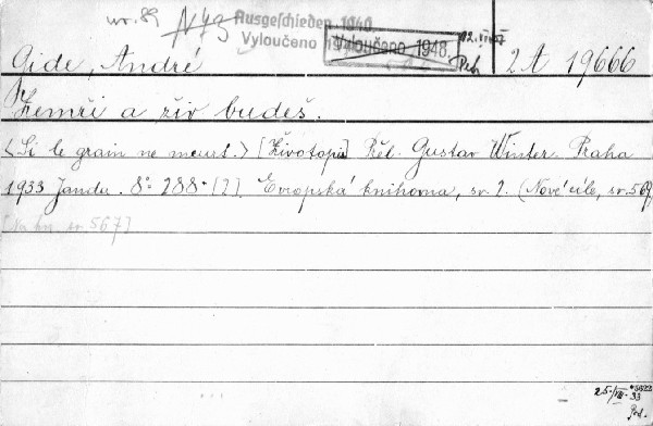 Autor | André Gide ; z fr. orig. přel. Gustav Winter |