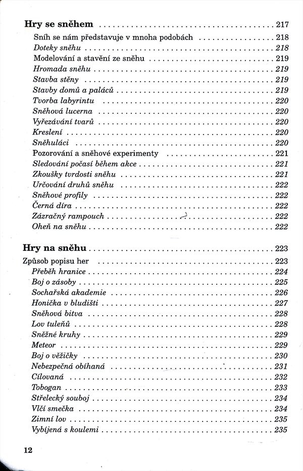 Autoři uplatňují herní přístup k zvládnutí základů techniky pohybu na různých druzích lyží a představují i sáňkování, skiboby, snowboard, sněžnice, jízdu se psy a zimní táboření. Navrhují náměty pro zimní akce bez sněhu i pro večerní program. Publikace je určena učitelům, vychovatelům, dětským vedoucím, cvičitelům i sportovním instruktorům.