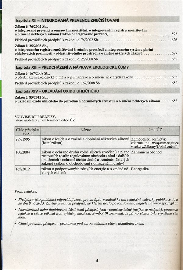 Přehled zákonů z oblasti ochrany životního prostředí na základě právního stavu k 8. 7. 2013.