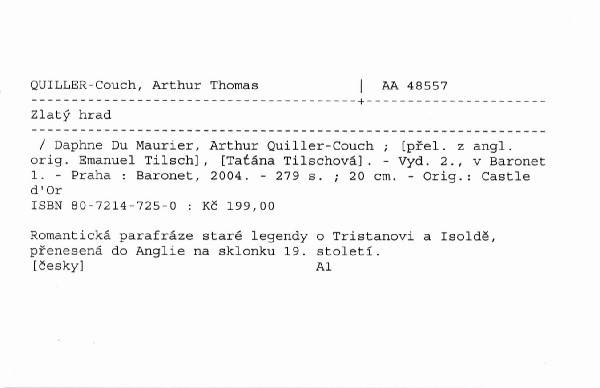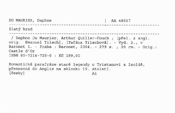 | Autor | Daphne Du Maurier, Arthur Quiller-Couch ; [přel. z angl. orig. Emanuel Tilsch], [Taťána Tilschová] |