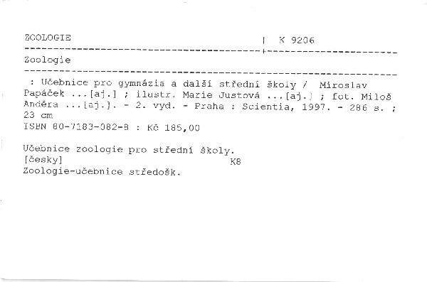| Záhlaví | ZOOLOGIE |