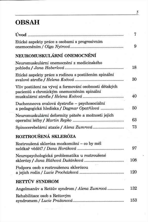 | Podnázev | léčebné, psychosociální a vzdělávací aspekty progresivních onemocnění |