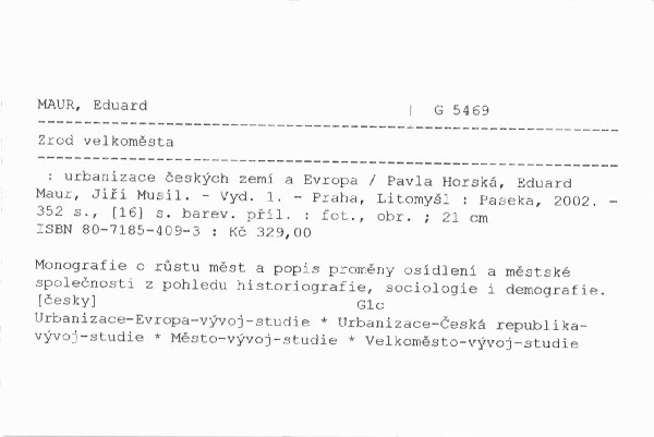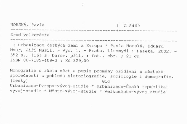 Monografie o růstu měst a popis proměny osídlení a městské společnosti z pohledu historiografie, sociologie i demografie.
