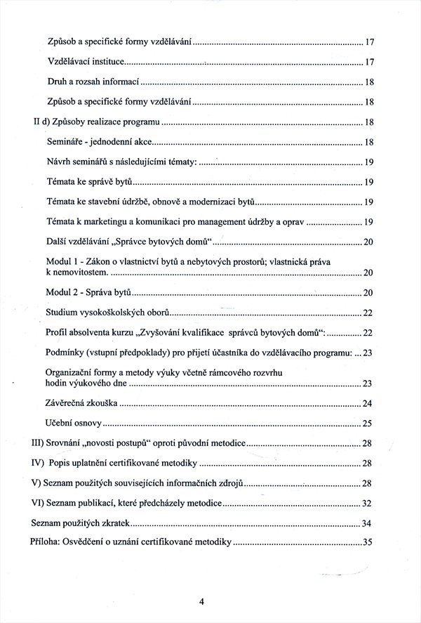 Příručka obsahující postupy a obsahovou náplň při zvyšování kvalifikace a rekvalifikace správců bytového fondu.